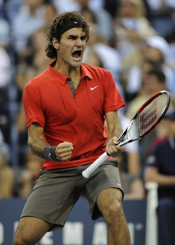 Roger Federer of Switzerland reacts during his men’s final match against Andy Murray of Great Britain at the US Open tennis tournament on September 8, 2008 at the USTA National Tennis Center in New York City. Federer won the first two sets of the US Open final 6-2 and 7-5 over Murray as the Swiss second seed bids for his 13th Grand Slam title and fifth straight US Open crown. AFP PHOTO / TIMOTHY A. CLARY (Photo credit should read TIMOTHY A. CLARY/AFP/Getty Images)