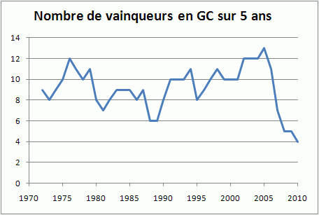 Nombre de Vainqueurs en GC différents sur les 5 dernières années