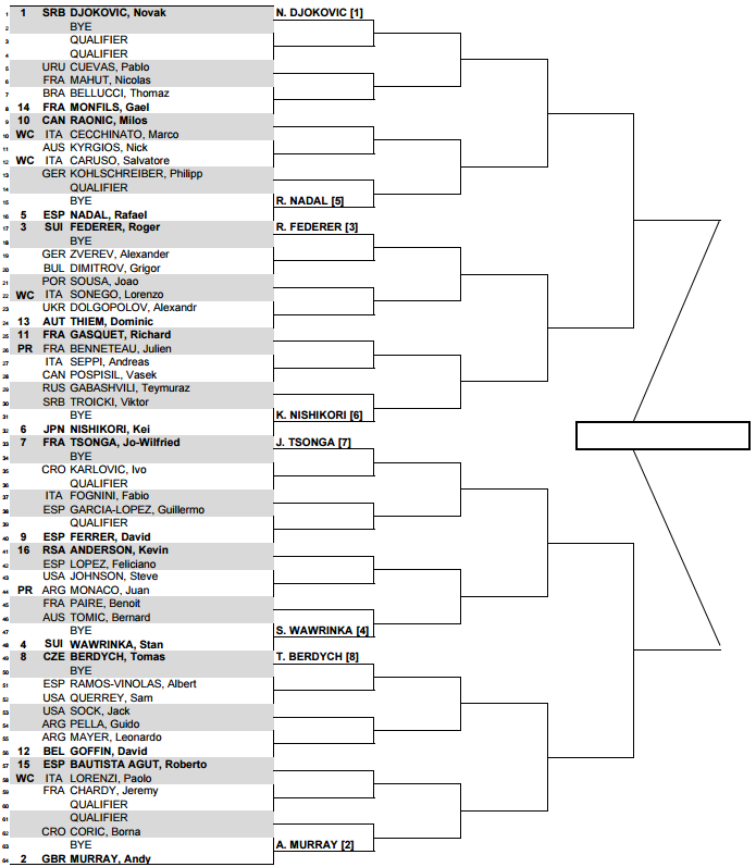 La partie haute rassemble Djokovic, Nadal, Federer, Nishikori, Roanic, Thiem et Gasquet. Murray doit se sentir bien tranquille …