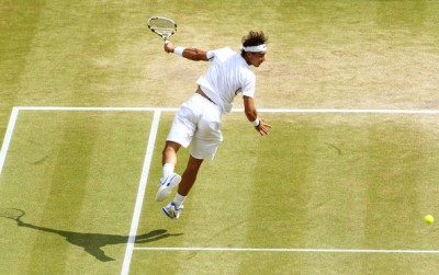 Les voyants sont au rouge à l’heure d’aborder Roland-Garros. Nadal montre un visage jusqu’alors inconnu, presque résigné par la prise de pouvoir serbe. On l’imaginait pourtant plus vindicatif, plus désireux de se (dé)battre. A Paris le tirage aura son importance : où échouera Roger Federer ? C’est finalement sans surprise qu’on le retrouve une fois de plus dans la partie de tableau de Djokovic. Avec un parcours du combattant (del Potro, Gasquet ou Bellucci, Federer), on se dit que le Serbe aura fort à faire s’il veut égaler le record de McEnroe et devenir numéro 1 mondial ou, encore mieux, remporter Roland-Garros. Nadal est épargné par le tirage, avec comme seule alerte une demi-finale théorique contre Andy Murray. Cependant les ennuis commencent dès son premier tour, face à John Isner, où il se retrouve mené deux sets à un à la suite de la perte de deux tie break ! C’est unique, Rafael Nadal devra s’en sortir en cinq manches pour la première fois de sa carrière Porte d’Auteuil. Ce qu’il fait, naturellement. Même si l’Américain a joué chaque coup à fond, on reste étonné devant la passivité de Nadal, surtout en passing. Cela n’annonce rien de bon pour la suite. A la faveur d’un tableau consentant (Andujar, Veic, Ljubicic) et après deux bons matchs face à Soderling et Murray, Nadal rejoint la finale et attend le vainqueur du choc Federer – Djokovic. Ce match, qualifié par nombres de spécialistes comme l’un des plus grands jamais joués à Roland-Garros, défie l’entendement et voit un Federer merveilleux et virevoltant donner la réplique à un Djokovic destructeur, peut-être lui aussi à son meilleur niveau de l’année. En quatre manches époustouflantes, le Suisse s’impose et brise les rêves ocres de Djokovic. Et par la même occasion, fait le bonheur de Nadal, qui ne devait pas en croire ses yeux. On ignore si tonton Toni a sablé une bouteille ou deux pendant la nuit, toujours est-il que la finale fut plus serrée que prévue. Nadal s’impose en quatre manches et achève le chapitre terre battue par une fin heureuse. Un Nadal relancé n’est pas aisément arrêté dans sa course, si Djokovic répond présent à Londres il trouvera du répondant !