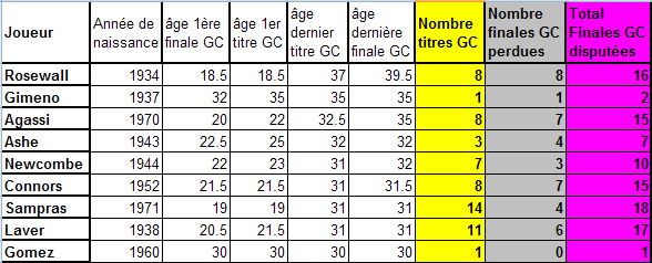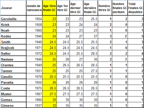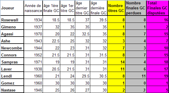 - Gomez 30 ans pour son seul GC (Roland Garros 1990).