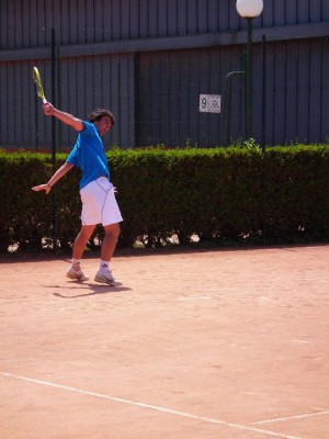 Les deux premiers matchs sont finis et le score et de 1 point partout. Il fait de plus en plus chaud et l’attente pèse dans les jambes de deux équipes. François entame son match, un combat long et très physique, comme il les aime. Armé de sa pommade anti-maux de dos, il se sent pousser des ailes ! Il l’emporte finalement à force de contres et de nombreuses contestations qui nous amusent mais, assez étonnamment, que son adversaire ne goûte pas… C’est au tour de Quentin de jouer, l’enjeu n’est rien de moins que le titre 2011 ! Nous sommes tous sereins car nous avons confiance en son service. Mais Quentin ne joue jamais sur terre battue… Son déplacement n’est pas adapté et ses services moins perforants qu’à l’accoutumée. Face à la chaleur et au savoir-faire de son opposant, il étouffe. Le point est perdu, le titre va se jouer au match de double décisif ! C’est un scénario parfait pour le suspense mais c’est un motif de pression supplémentaire. Naturellement, Quentin et Vincent composent notre équipe de double, en face ce sont les numéros 1 et 4, soit les deux vainqueurs du jour, qui sont alignés. Le score final m’échappe maintenant mais nous avons perdu. Notre finale nous permet tout de même d’accéder au championnat de première division pour l’année 2012. Forcément déçus mais fiers de notre parcours, nous n’avons pas mis plus de trois heures avant de nous retrouver autour d’un barbecue, à parler un peu de tennis, et beaucoup d’autre chose.