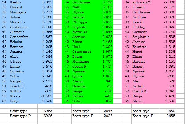 Ayant pris la dernière mise à jour d’octobre envoyée par Clément, j’ai vérifié les résultats pour quelques joueurs et je n’ai pas trouvé d’anomalie entre les derniers résultats.
