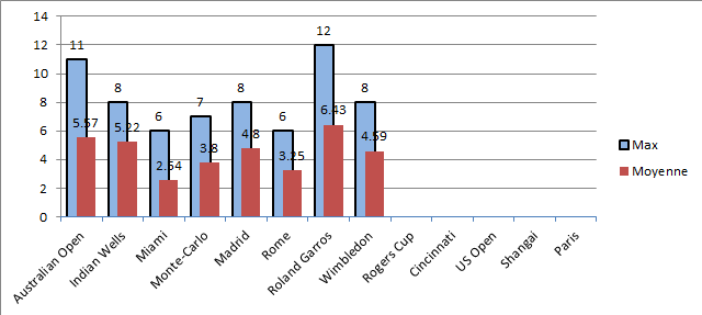 La fréquentation est nettement plus importante pour les tournois du Grand chelem. On peut remarquer que le calendrier des Masters 1000 complique assez les choses avec des tournois qui s’enchaînent et des tirages au sort seulement 24h avant les premiers matchs.
