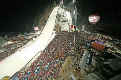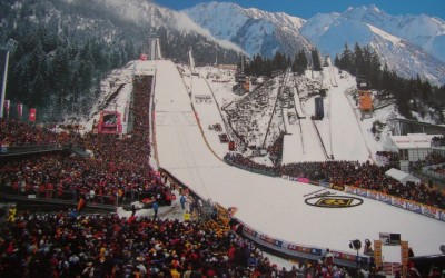 Garmisch-Partenkirchen est la Mecque allemande des sports d’hiver. Sis au pied de la Zugspitze (pointe du train), point culminant d’Allemagne, Garmisch a une histoire prestigieuse avec l’accueil des JO après Chamonix, ou la mythique Kandahar du ski-alpin. Dans une patrie de génies de saut à ski, Garmisch en est le pèlerinage. Site spectaculaire, constamment rénové, c’est le plus grand des tremplins de la Tournée avec un record à 143,5 m.