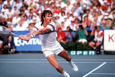 J’ai commencé à me passionner pour le tennis vers la fin des années 70 au début de la rivalité Borg/McEnroe. Ces duels entre deux jeux si différents me fascinaient. Les nerfs d’acier et les passings de génie de Borg. Le volcan caractériel et les volées de génie de McEnroe. Ne voyant quasiment que des matchs de Roland Garros et des résumés des Borg/McEnroe de Wimbledon et us open, Connors n’existait alors pour moi que par ce que m’en disait des connaissances un peu plus âgées que moi qui avaient connus sa période au sommet du tennis mondial. Et puis enfin je l’ai vu joué contre Pecci en 79 à Roland Garros. Le choc fût immense. Il est devenu instantanément mon joueur préféré. Sa combativité hors du commun, son retour de service, son revers à deux main génial (si si ça existe) et son coup droit complètement merdique. J’étais tombé amoureux. A partir de cette date, je n’ai manqué aucun de ses grands matchs suscités. Mon préféré : la finale de Wimbledon 1982. Le match qui signait le premier des nombreux come back de celui qu’on appelait déjà le vieux lion. McEnroe venait juste d’envoyer Borg à la retraite et de se hisser au sommet mondial. C’en était trop pour Jimmy qui enchaîna Wimbledon et Us Open. Il aurait d’ailleurs du finir n°1 mondial cette année là.