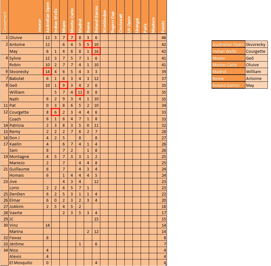 Cependant May, Antoine et Robin prennent place dans le Top 5 avec ce tournoi.