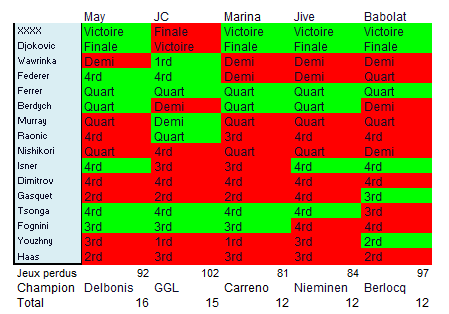 Tsonga et surtout Ferrer ont été les joueurs les plus prolifiques en perdant là où tout le monde les attendait. Contrairement à Nishikori et Dimitrov qui font choux blanc.