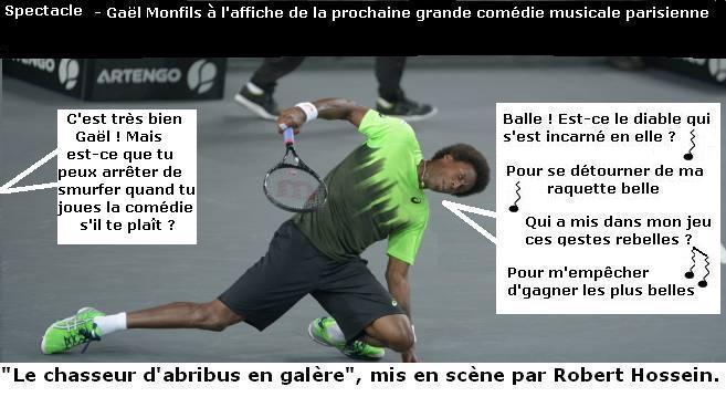 Je m’explique : si vous allez sur le site de l’Equipe section Tennis vous verrez dans les articles recommandés une interview de Raonic suite au quart de Bercy intitulé « Il m’a rendu la vie… » Bon, en fait le titre est tronquée et il manque le mot « difficile ». Voilà. Ca casse pas des briques à un canard mais c’est juste pour dire que parfois il n’y a strictement rien à faire pour trouver un gag.