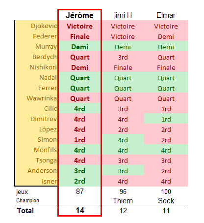 Quelle édition 2015 ! Tel un Wawrinka vêtu de ses plus beaux carreaux, Jérôme remporte son second Grand chelem en carrière. Personne ne l’avait vu venir. Pour ajouter un peu de panache, il s’offre même le luxe de finir devant sans aucun coupeur de tête pour l’épauler.