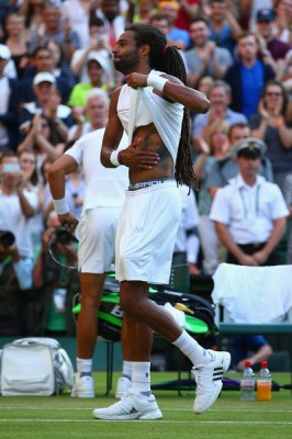 Je ne pouvais pas passer à côté de cette rencontre après le match de la veille. Dustin Brown, le sec disciple de sa Majesté Ganja, a sorti le match de sa vie pour éliminer Nadal en quatre sets. Quand un joueur aussi spectaculaire refuse de faire autant de faute que d’habitude, ça fait mal… Du chop à la pelle, pas loin de 100 montées au filet, des coups de pattes absolument improbables, des retours de revers supersoniques, c’est simple, Dustin Brown a sorti la totale pour dégouter son adversaire. Vous aurez compris que je me contrefous de Troickard, revenu d’un royaume des portés disparus qu’il n’aurait jamais dû quitter. J’espère vivement que le germano-jamaïcain s’en sortira, même si la menace de la malédiction des vainqueurs de Rafa pèse maintenant sur lui… T’as qu’à sortir un fétiche mec, ou à réaliser une poupée vaudou à l’effigie de ce brave Troicki ! Bim, contre-malédiction ! Jah Man ! Mon prono qui casse de l’espoir : Troicki en 3.