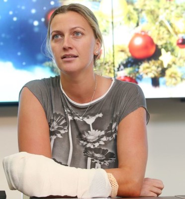 Fin 2016, sa karrière a failli s’arrêter brutalement. Alors que Peter chantait jadis « The K… nife« , Petra, elle, s’en prend un dans la main gauche : le 20 décembre 2016, elle est agressée au kouteau à son domicile de Prostejov par un kambrioleur. Les 5 doigts de sa meilleure main sont profondément entaillés, deux nerfs partiellement sektionnés, elle doit subir une lourde opération et est ékartée des rakettes pendant plusieurs mois (jusqu’à Roland Garros). Le reste de sa saison sera erratique et elle finira l’année à la 29ème place.