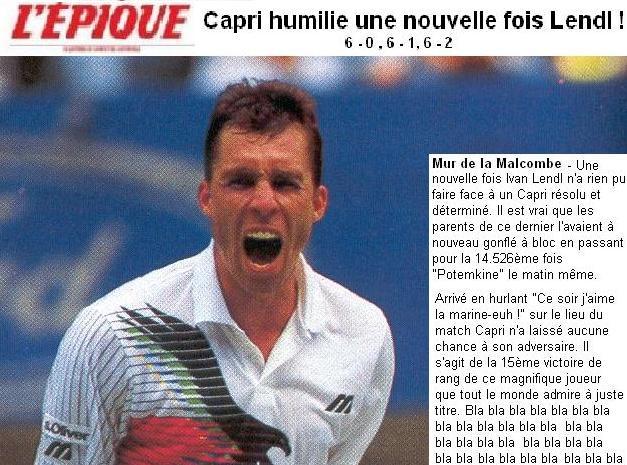 Décidemment, un grand Homme ce Capri, il nous avait déjà avoué, signe ultime de reconnaissance des âmes pures à travers le monde, pratiquer le service-volée contre le mur, voilà qu’il nous explique avec force et ingénieux détails un parcours que chaque parent honnête aimerait, l’œil humide de fierté, voir suivre son aimée progéniture.
