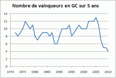 11 – Nombre de français dans le Top 100 à la fin de l’année (contre 12 en 2009, 14 en 2008 et 15 en 2007 : la décroissance continue).