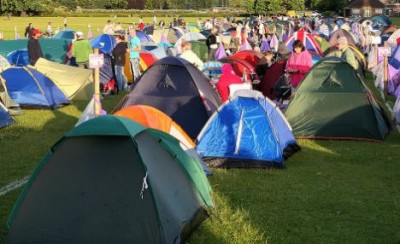 Et le pire était à venir : la panique se transforma en désespoir au moment où, alors que nous croyions être arrivés au bout de la queue sur le trottoir, nous constatâmes que celle-ci tournait pour s’enfoncer dans un immense parc (Wimbledon Park). Horreur : des centaines de campeurs sont déjà présents sur les lieux! Et nous qui pensions avoir assuré nos arrières! Mortifiés, nous allons nous installer en fin de queue en priant tous les dieux du monde qu’il reste deux petits tickets pour les losers que nous sommes.