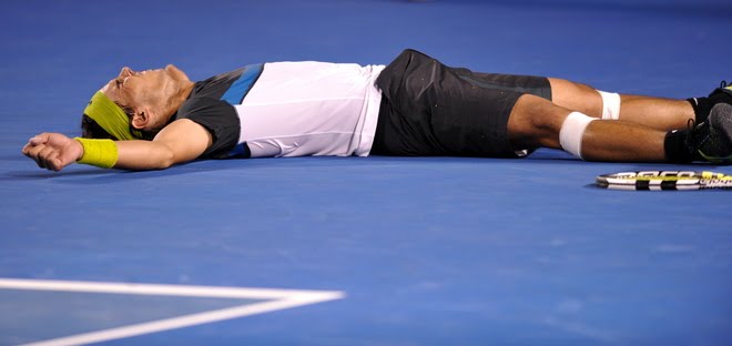 La sympathique demie de Tsonga était assez plébiscitée parmi nous ; Fognini fait une percée intéressante, mais bouchée d’un doigt par le Serbe Turgescent (les posts de karim inspirent mon clavier, ainsi que la photo suggestive du Cri de la Victoire « I reached my gaule ») ; le couac de Murray n’a provoqué de hoquet que par la sévérité du score ; la mini résurrection de Monaco dans la Principauté éponyme donnait surtout l’occasion de jeu de mots vaseux ; Grigor a joué les artistes et a tiré sa révérence et Gulbis (Gulbis se passe toujours de commentaires, ôtons-lui son droit à être sujet d’un verbe – d’ailleurs « Sire, le Roi n’est pas un sujet »).