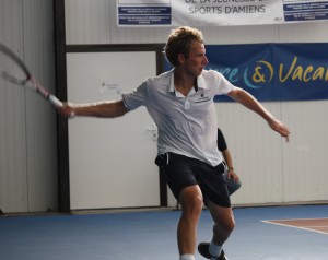 Quarts de finale messieurs, Sébastien Grosjean bat Charles Roche (6/4 6/1). « Seb » est de retour. Depuis son opération à l’épaule, fin 2008, les apparitions de l’ancien N°1 Français se sont faites rares : un petit tour dans le tableau de double de Roland-Garros, un tour passé au Challenger de Nottingham, puis trois abandons successifs. Depuis, plus rien. Jusqu’à cet Open de Rue – Le Crotoy, où le Français retente un comeback. Son premier match l’oppose à Charles Roche, Tréportais dont le meilleur classement ATP reste une 560e place mondiale il y a un peu plus d’un an.