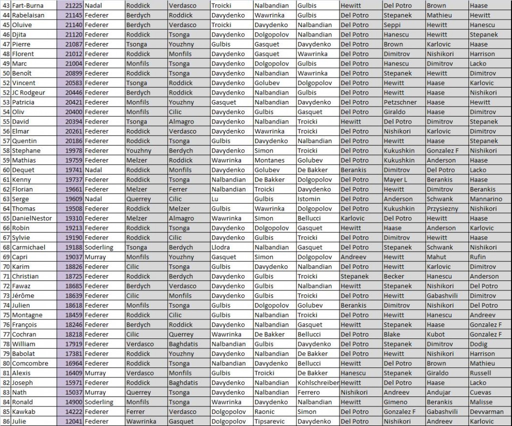 Guillaume la trouve excessive au motif que durant un court laps de temps, Ferrer rapportait presque autant de points que Djoko et propose en conséquence d’ajouter un troisième lieutenant.