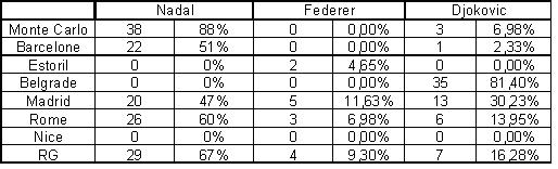 J’ai 22 points (et non 16) Murray à Brisbane, Ferrer à Aukland, Djoko à Miami, Nadal à Monte Carlo, DelPO à Estoril, Nadal à Rome et RG ça fait 7 x 3 =21 plus Ferrer finaliste à Barcelone =22