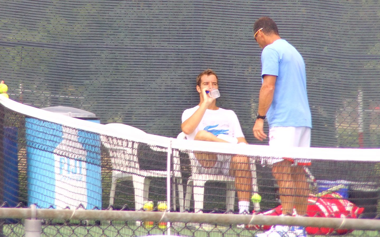 Sur des courts annexes, Ferrer et Berdych s’entraînent ensemble (et vous ne rêvez pas, sur la vidéo ci-dessous, Ferrer est bien à la volée) tandis que sur le court d’à côté Gasquet fait ses gammes avec Sébastien Grosjean.