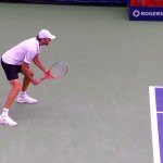 Ci-dessous, les trois derniers points du match en HD, à partir de 5-1 Weintraub dans le tie-break du deuxième set : ace de Karlo, puis superbe volée liftée de fond de court de Weintraub pour s’offrir une balle de match, et enfin un non moins superbe passing-shot de revers de l’Israélien pour conclure. Comme le fait remarquer mon fils, Karlovic n’a pas besoin de lever le bras pour serrer la main de l’arbitre de chaise.