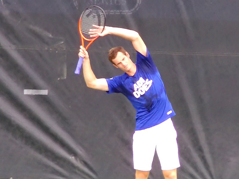 Nous ne verrons qu’à peu de reprises le superbe revers du Français (encore plus impressionnant en vrai qu’à la télé) car l’entraînement semble porter exclusivement sur le coup droit.