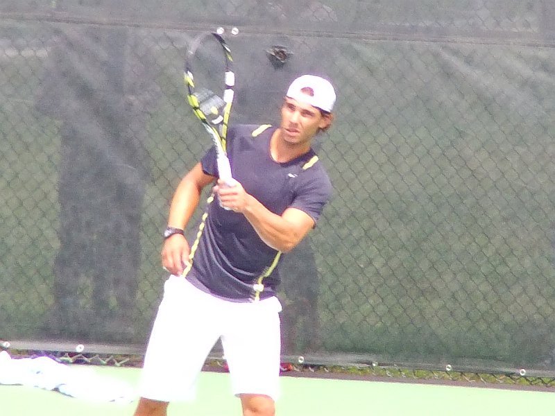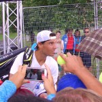 Nous allons ensuite assister aux essais libres où nous retrouvons, comme la veille, David Ferrer et Richard Gasquet, accompagnés cette fois carrément d’Andy Murray et de Rafael Nadal. Inutile de dire que la foule des grands jours se presse pour assister à cette séance d’entraînement, assez rapidement interrompue par la pluie.