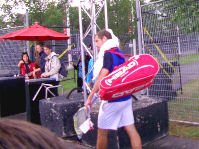 Nous assistons à la première manche de ce match, lors duquel mes talents de pronostiqueur sont mis à mal, puisque j’annonce à mes fils que le Polonais ne va faire qu’une bouchée de son inexpérimenté adversaire, genre 6/1 6/0. En réalité Kubot, peu inspiré, souffre pour se dépêtrer de ce premier tour face à un gaucher attaquant, accrocheur, et qui n’hésite pas à prendre le filet à la première occasion (mais très limité au service). Bref Kubot s’en sort 6/4, mais le faible niveau de jeu affiché nous pousse à déserter le Central et aller assister aux essais libres [Pour la petite histoire, Kubot remportera le deuxième set 7/5, mais se fera sortir le lendemain au second tour des qualifs par une autre wild-card canadienne, Peter Polansky].