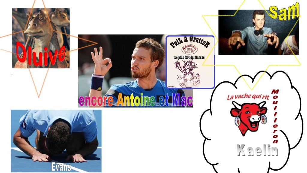 Antoine Gazonne, Rémy est un Pou, MacArthur Alterne, Karim est une Chèvre adepte du Postérieur de Serena, Jeanne/Conchita choque, Persée a la classe, Elmar est Suisse, Ivan est un Bouc (un avenir avec Karim ?), Colin est un Phasme, Oluive est JarJar, Antoine et MacArthur nous Grattent et Evans nous Gonfle, Sam est une Pastèque, Kaelin Mouille, Captif.