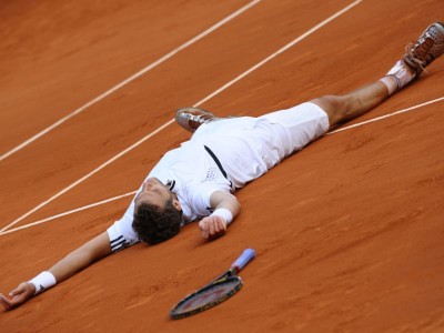 « Allez Guy, il faut que tu m’aides, là. Dis-moi qu’est-ce que je fais ? Qu’est-ce que je dois faire ? C’est pas possible d’en arriver la. Cette coupe elle était à moi, à nous. Tout le pays me regarde, tout le pays nous regarde. Ca peut pas s’arrêter là, ça peut pas. Pas ici, pas à Paris, avec cette énorme coupe qui me regarde et qui s’éloigne. C’était gagné, il avait la tête sous l’eau, le Russe. C’était un rêve, c’est devenu un cauchemar, je ne sais plus quoi faire. Il faut que tu m’aides, Guy. Je vais frapper encore plus fort, je vais cogner autant que je peux. Je vais donner tout ce que j’ai. Mais c’est pas vrai, ça revient, ça revient toujours. Et de plus en plus vite. Il ne fait plus aucune faute, le Russe. C’est incroyable de jouer comme ça, il n’a jamais joué comme ça avant. Qu’est ce qu’ils vont dire tous si je perds ce match ? Mener deux sets à zéro et se faire remonter dans le match le plus important de ma vie. J’ai les jetons. Il faut que tu me dises ce que je dois faire Guy, je ne vais pas y arriver, je n’y arrive plus. »