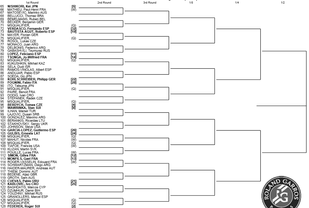 000_DV1480816_0Hop hop hop, on se presse, pas de bavardages inutiles aujourd’hui. Nous avons un programme chargé. Le tirage au sort de Roland-Garros est terminé, il vous reste deux jours pour concocter vos meilleurs pronostics pendant que tous les amateurs de tennis dissertent sur le quart de finale Djokovic/Nadal.