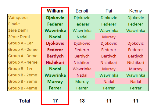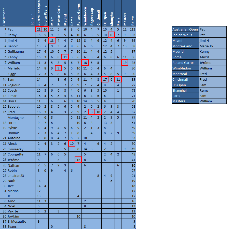 Bravo à tous les vainqueurs de tournoi, surtout à ceux qui ont réussi le doublé (Pat, Sam, William et Fred)