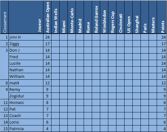 Un petit mot pour commencer sur les résultats de Melbourne. Jimi H s’offre un magnifique grâce à un superbe score de 22 (+2 points de bonus)