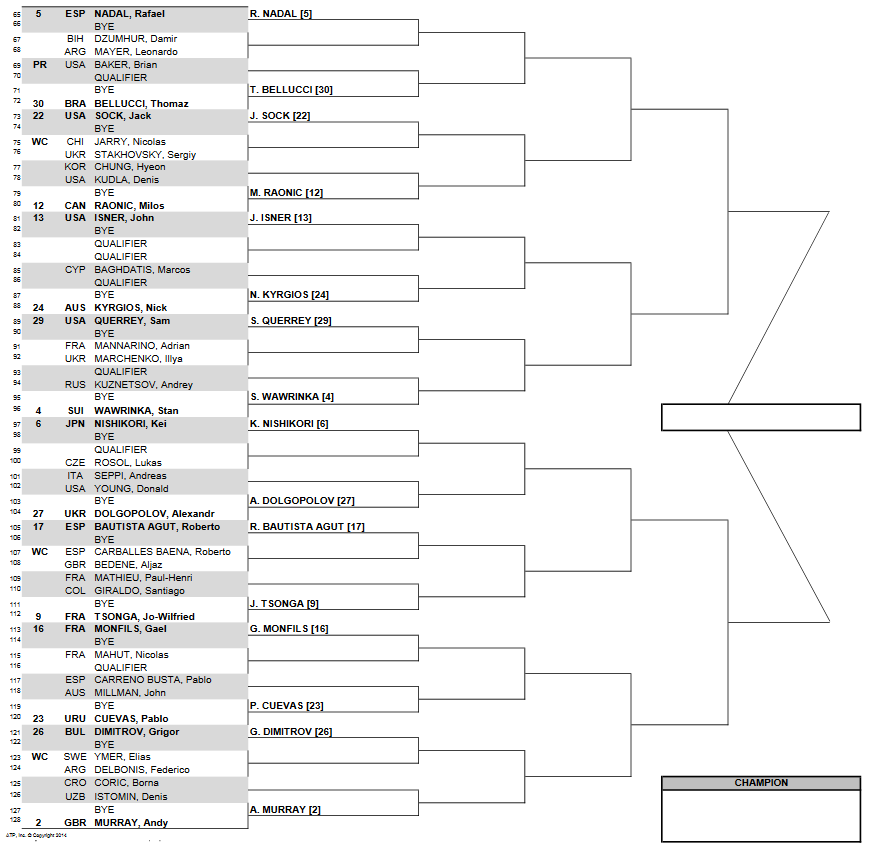 Attendons avec Rafa tout de même. On croyait Roger cuit en 2013, et il nous a bien démenti. Idem avec Novak en 2009 et 2010. Rafa joue en dents de scie, alors que début 2015 il était uniformément mauvais. Et puis, Stakho, Bellucci ont aussi fait forfait.