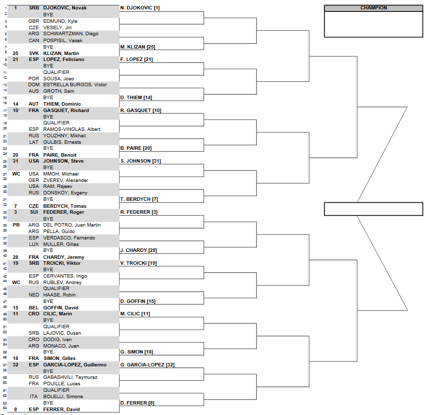 Début du second tour Messieurs, le vendredi 25 mars à 16h, heure française.