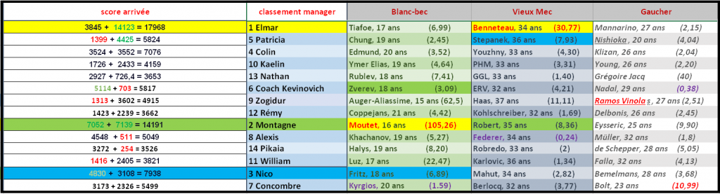 En fait, vous devez juste aller chercher les points ATP de votre jeunot et de votre vieux en cette fin d’année, multiplier chaque total par son coef (repris dans le dernier tableau après leur nom), et additionner leur 2 scores.