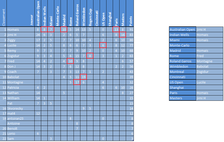 Un grand merci à tous les participants de 15-love qui ont permis à ce jeu de vivre durant ces dernières années.