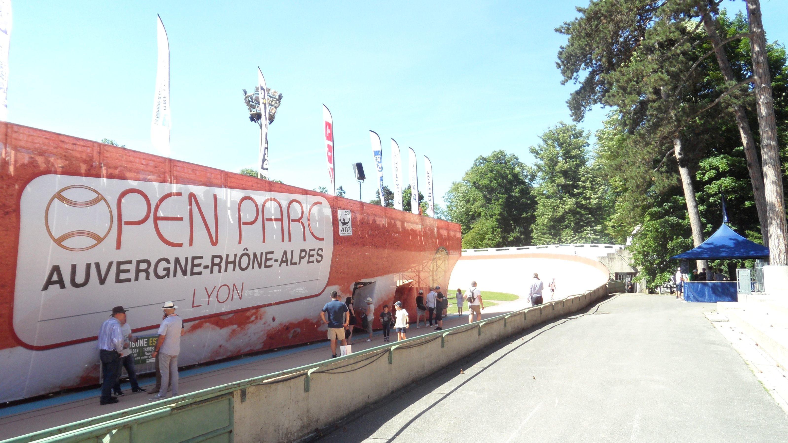 Excellente idée : le court central a été construit au sein d’un vélodrome situé au milieu d’une île artificielle dans le magnifique et immense et bucolique Parc de la Tête d’Or. Le cadre est donc superbe.