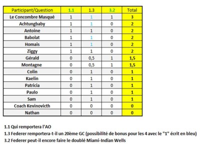 Vous étiez 6 (Homais, Le Concombre masqué, Antoine, Achtungbaby, Babolat et Ziggy) à avoir entrevu à l’avance la victoire de Roger à l’AO.
