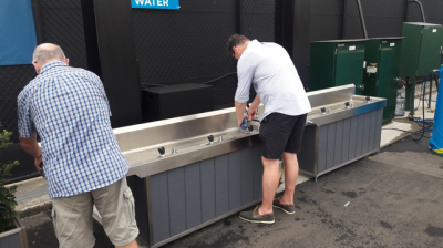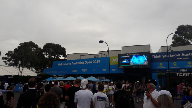 Avant d’arriver sur le stade, je revenais de l’aéroport et j’ai rejoint mon ami en ville, où j’ai pu constater que de nombreuses affiches sont disposées un peu partout. Pour rejoindre l’enceinte, rien de plus simple : des services de tramway y vont directement depuis l’hyper-centre ville. Et ma première surprise fut de constater que le tournoi est très proche, à peine 15 min de transport suffisent pour rejoindre l’endroit. Je ne sais pour quelle raison, je pensais que c’était excentré et difficile d’accès. En réalité, c’est même encore plus pratique que Roland Garros car il n’y a pas les 15 minutes de marche entre la gare et l’entrée : vous sortez du tram et vous y êtes. En plus, il y a des consignes gratuites qui ont pu prendre mon bagage, c’était parfait.