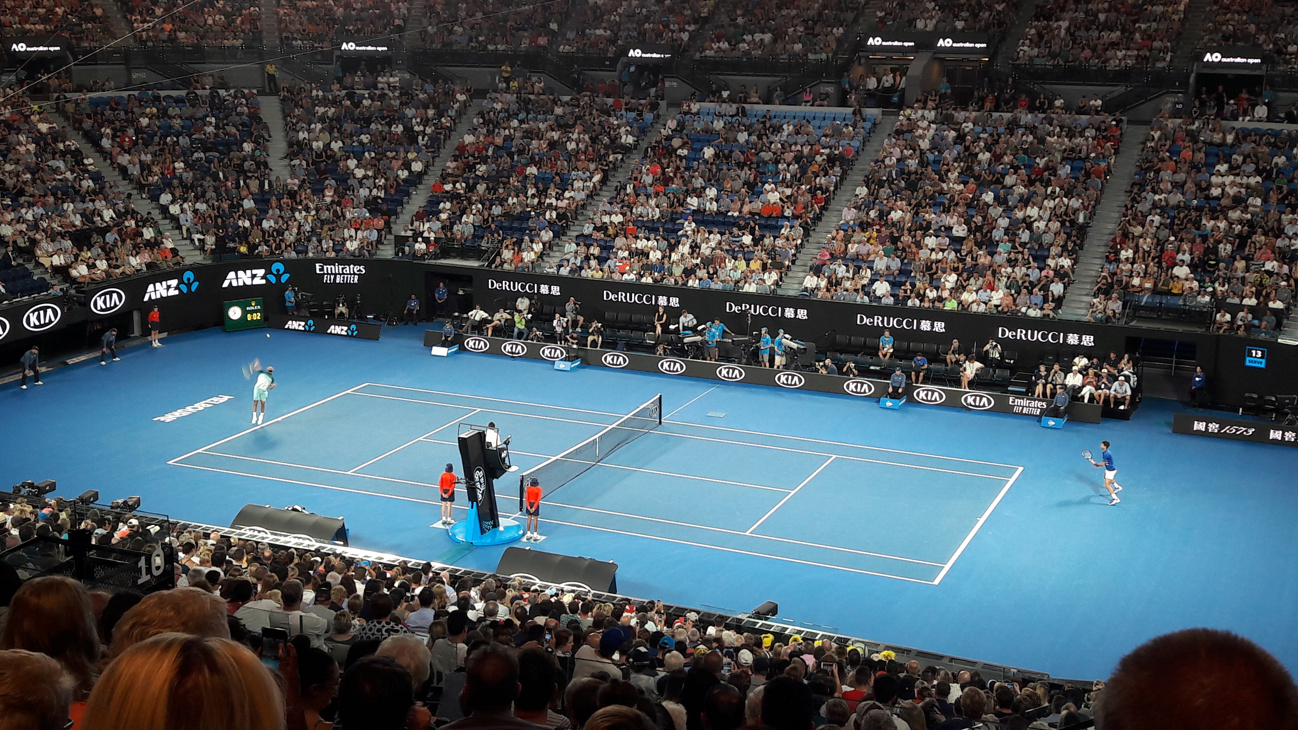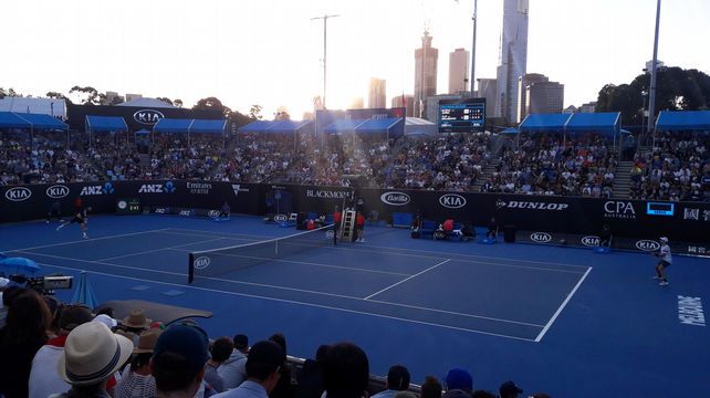 Comme dit plus haut, j’y suis retourné le samedi, mais cette fois avec uniquement un ground pass. A ce niveau du tournoi, peu de matches de simple hommes ou femmes se jouent encore sur des petits courts annexes. Nous en profitons pour voir du double (mon pote a pu faire un selfie avec Alizé Cornet qui venait de gagner son match), un peu de junior. Nous essayons d’accéder à la Melbourne Arena (ex-Hisens Arena), mais la file d’attente est trop importante pour voir Herbert perdre contre Raonic. Alors nous décidons de tenter notre chance sur la « 1573 Arena », où nous avons pu assister à la quasi-intégralité du match entre Coric et Krajinovic, autrement dit, un petit Croatie/Serbie. J’aime mieux vous dire que le spectacle était au moins autant dans les tribunes que sur le court : quel boucan fait par les supporters des deux joueurs ! c’est resté bon enfant, et à la fin, après le match, c’était carrément la folie côté supporters Croates qui ont continué à chanter pendant de longues minutes.