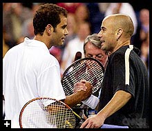 En se limitant aux apparences, cette rencontre prend des allures de baroud d’honneur, de mise à mort programmée pour Sampras. C’est oublier que même décroché au classement et régulièrement talqué et langé par les meilleurs du circuit, Pete Sampras renaît toujours à New York. Il reste sur deux finales ici, largement perdues certes, mais deux finales quand-même. Et il y a surtout cette capacité à se sublimer quand il joue André dans ce tournoi, devant « leur » public. Pete a trop souffert pendant ces deux années écoulées, a assisté à son propre enterrement et écouté les oraisons funèbres chantées par les fossoyeurs charognards à mémoire courte. Il a une ultime chance de lustrer sa légende quelque peu ternie et faire à tous des adieux dignes de son rang.