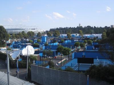 Alors autant on peut trouver qu’à l’US Open, la station de métro dédiée, le pont bardé de drapeaux américains, les écrans géants dans le stade, la musique aux changements de côté, les quarante restaurants et la plus grande boutique Ralph Lauren du monde, tout ça relègue le sport loin derrière les intérêts commerciaux des sponsors ; autant quand on arrive au fin fond du Bois de Boulogne, et qu’une adolescente pré-pubère avec une carriole et un parasol Perrier vous propose le programme du jour mais ne saurait pas vous dire ou sont les toilettes, et encore moins l’endroit ou on peut acheter quelque chose de chaud à manger, on se demande si on s’est pas gouré d’adresse parce qu’on cherchait en fait un des quatre tournois du Grand chelem… Le Melbourne Park est grand, on s’y rend à pied, et sans tomber dans l’excès du cousin d’outre-Pacifique (rappelez-vous, vous êtes en Australie), on y trouve des services à profusion : des toilettes, des distributeurs automatiques, des boutiques sympa, des restos de vente à emporter de toutes les cultures européennes ou asiatiques, et on se dit qu’à Paris, y’a du boulot…