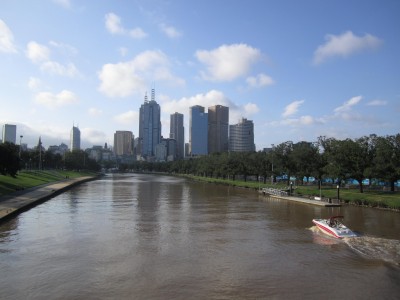 Une pub sur cinq à la TV montre du tennis : c’est Pat Rafter qui s’y colle pour le déodorant, et on essaye de nous refourguer le DVD du film Wimbledon entre deux spots avec McEnroe. Et ça c’est dans toute l’Australie… A Melbourne, c’est la folie : le complexe est à deux pas de l’hyper-centre ville, il y a des drapeaux « Australian Open » dans les rues et toutes les vitrines des boutiques ont des balles de tennis ou des posters de champions dans leur devanture. Mieux, une passerelle piétonne depuis laquelle on peut voir un paquet de courts annexes, permet de venir prendre l’ambiance du tournoi pour pas un sou ! Il y a bel et bien une ambiance de manifestation sportive importante dans la ville et, le lundi matin du premier jour, dans les rues, les gens sont tous en train de marcher « pour aller voir le tennis »…