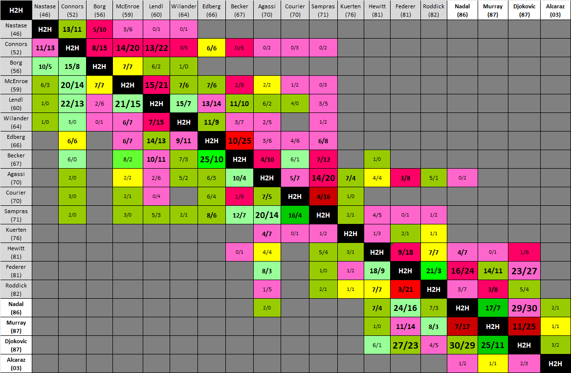 Head-to-Head entre les n°1 ATP
